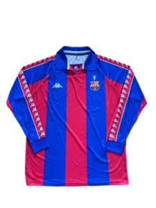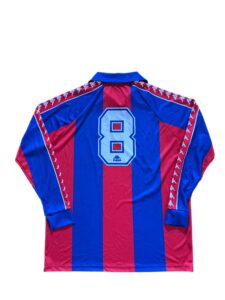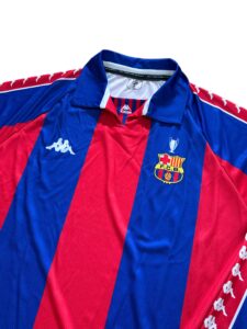 The Barcelona 1992 Intercontinental Cup home jersey celebrates the golden rise of Johan Cruyff’s Dream Team. Worn during the club’s global breakthrough, it reflects Catalan pride, European triumph, and the artistry that defined early 90s football.
