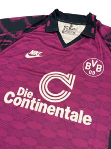 The Borussia Dortmund Away Jersey 1992-1993 is a true classic of German football culture. This retro football shirt brings back memories of the early ’90s, when BVB were building the foundations of the team that would later conquer Europe.