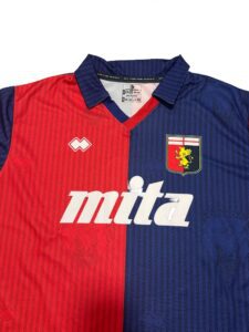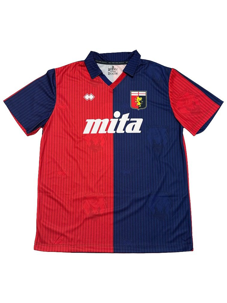 The Genoa 1991 Home Shirt captures one of the most memorable seasons in the club’s modern history. It features the iconic red-and-blue halved design and the classic Mita sponsor. The jersey feels authentic, bold and essential for Serie A collectors.