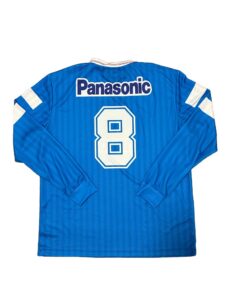 The Marseille 1991 Away Jersey brings back the legendary blue design worn during OM’s golden years. This classic retro remake features iconic sleeve stripes, the Panasonic sponsor and the unmistakable 90s aesthetic. Perfect for collectors and fans of French football heritage.