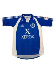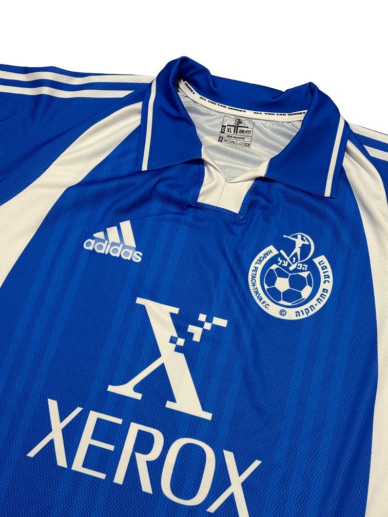 The Petah Tikva 2003 Home Jersey brings back the bold blue-and-white design worn during a memorable season in Israeli football. It features classic adidas stripes, a strong Xerox sponsor and a clean home layout. The jersey feels light, comfortable and ideal for collectors.
