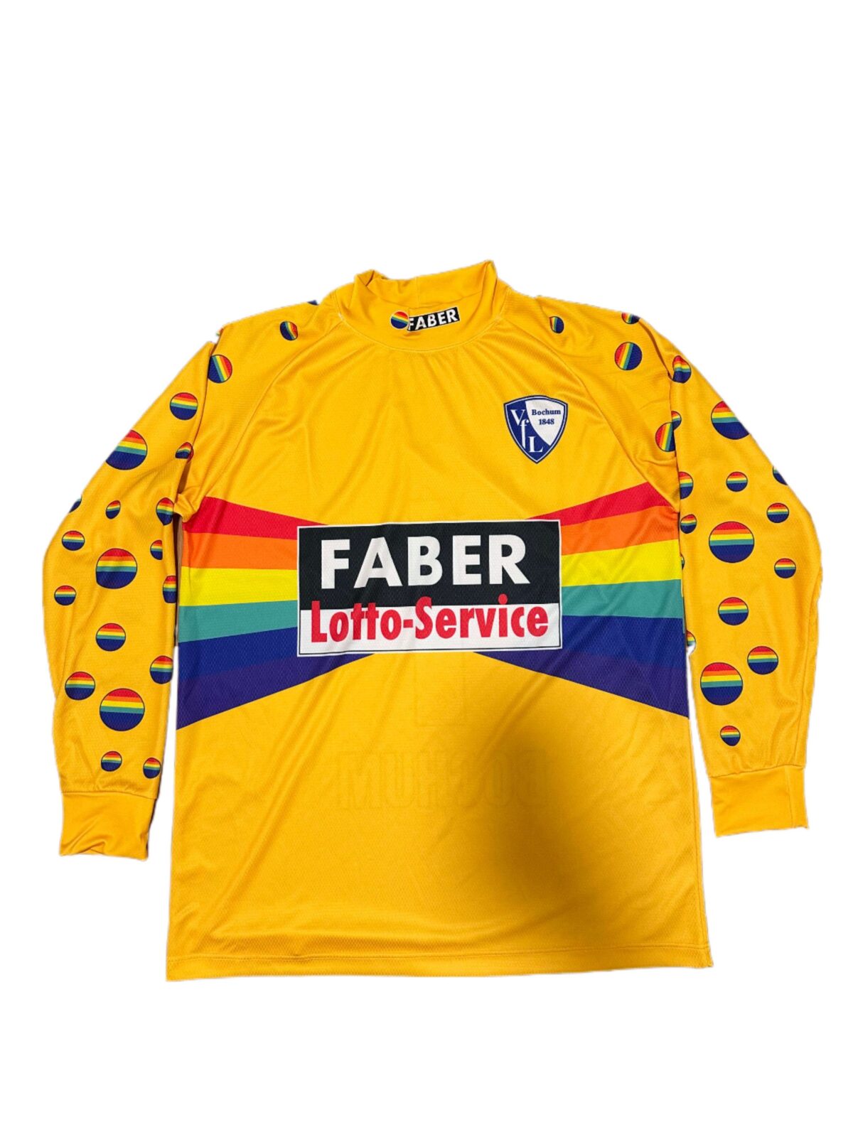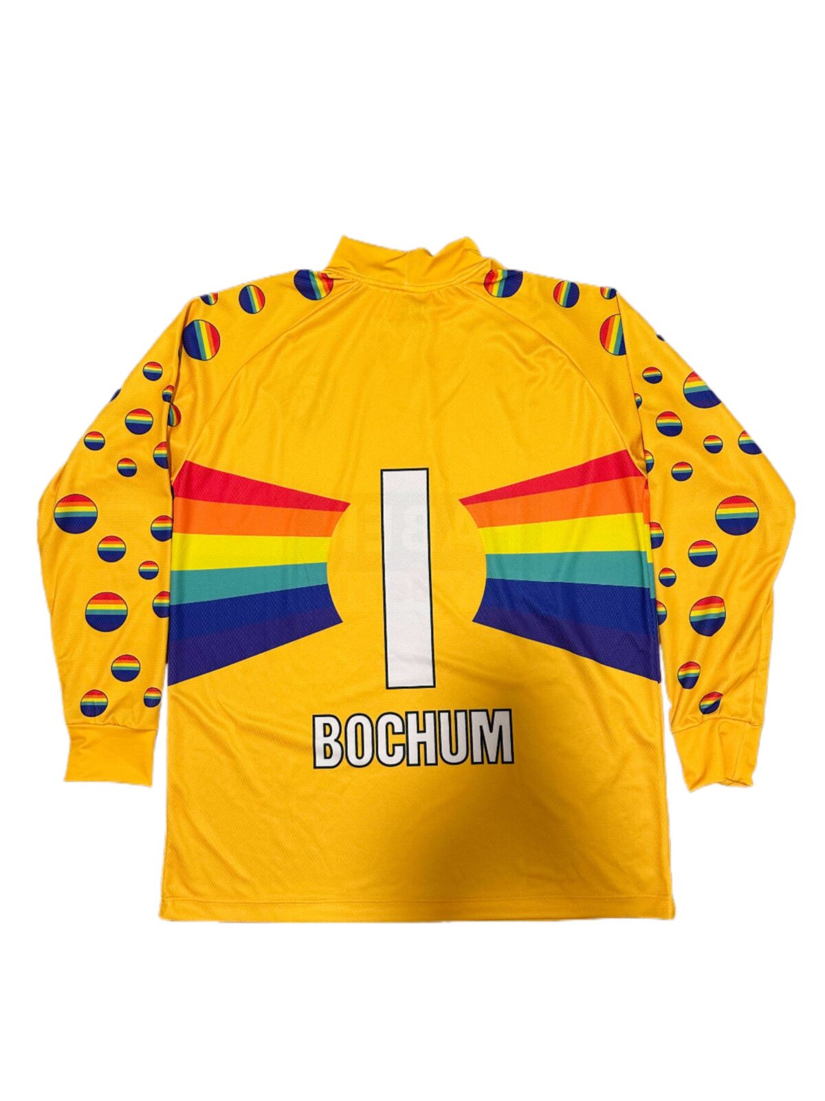 The VfL Bochum 1997/98 goalkeeper 3rd kit celebrates the expressive era of 90s football design. Bursting with bold colors and classic patterns, it captures the creative spirit of Bundesliga goalkeeping.